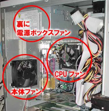 ファン自体も、よく冷えるもの、静かなもの、どちらも高レベルに両立しているもの、いろいろ製品があるようです。うるささの原因となるファンの軸の振動が発生しないよう、軸受けに流体を使っているものが良いようですねー。メーカーではサンヨーのものが良いとの噂。