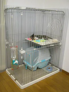 閉じ込めて飼うのはかわいそうじゃないかとも思うのだけど、人間と生活テリトリーを重ねて落ち着かない状況にいるより、ケージ内をテリトリーとして過ごさせる方法も有効だそうだ。ケージ内で過ごす時間が多くなるので、できるだけ広いケージにした。