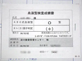 そして、きちんと調べたことがなかったので血液型検査もついでに追加した。まぁ、A型だろうけど、はっきりさせておくかと。