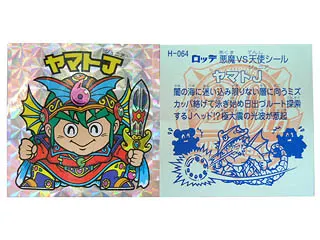 ま、それはそれとして、さっそく開けて食べてみた。なんか、チョコがでかい。包装を見ると「初代サイズ復活!」とある。あら、昔のは途中でサイズダウンしてたんですか。出たシールは「ヤマトJ」。