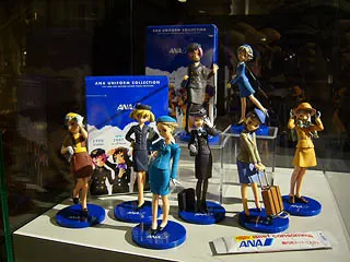 売り場にはフィギュアや食玩も置かれてました。写真はANA歴代の制服を再現した人気のシリーズ、ANAユニフォームコレクション。
