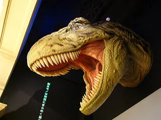 売り場の奥には、ミュージアムへのエントランスがあります。出迎えるのは大きなティラノサウルスの頭部。ミュージアムへの入館料は無料でした。(開館記念無料との表示があったので、今後は有料となるのかもしれません。)