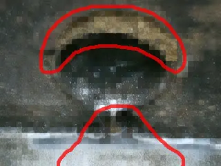 ちょっと見るに耐えない汚さなので画像にモザイク。赤で囲んだところに穴ができ、排水が漏れている。