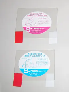 DSは上下二つの画面があるけど、この製品は一つに上下用二つのフィルタが入っているので、DS一つにつき一つ購入でOK。保護フィルタには表・裏どちらにも保護フィルムが貼り付けられていて、装着時に剥がす必要があります。