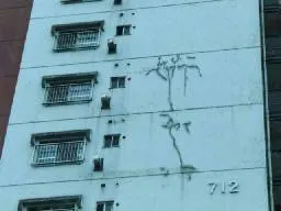 茨城県つくば市のとあるマンションの外壁に「姉さん」と読める亀裂があった。