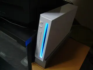 弟のWiiからメールが来た!Wiiにはメールを送受信できる機能があって、待機中にも受信することができる。メールが来ると、このようにスロットが青く明滅するのだ。イカス。