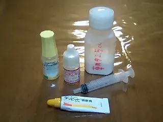 ルーの薬 ルーにやってる薬。奥の左から、目薬1、目薬2、飲み薬とスポイト、そして手前が軟膏。 目薬1は消炎酵素点眼剤。沁みるのか、注すのを嫌がる。目薬2は眼科用抗生物質製剤。こちらは楽みたい。目薬は目だけでなく、鼻にも垂らす。軟膏は広範囲抗菌点眼剤。これが一番殺菌力が強いのだが、強すぎて眼球にはあまりよくないらしい。まぶたを中心に塗る。飲み薬もまた、抗生物質。内から外から殺菌しまくりですね。 X Facebook はてブ Pocket LINE コメント(0) « ■前の記事:安いガソリンを入れに遠い店へ行くコストの計算 » ■次の記事:GRAN TURISMO HD Concept 発表 コメント コメントの投稿 コメントの返信 名前 コメント