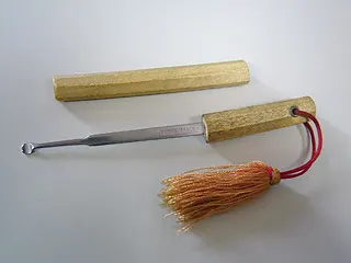 耳かき刀 愛用の爪切りと耳かき。実家にいた頃、もう20年くらい前に「いるか?」と父が部屋に渡しに来たのを受け取ったものだ。たぶん、出張かなにかで買ってきたおみやげ品。これをもらった頃、自分は父とそうそう口きくことがなかった。おみやげなんて、くすぐったいような気分だったのを覚えている。 耳かきは刀を模していて、鞘を抜くと中が耳かきになっている。 先端は型を打ち抜いたままで成型が荒く、使うと角が立って痛いので研磨して滑らかに加工した。友達に見せたら、そこまでせんでもと言われた。 X Facebook はてブ Pocket LINE コメント(0) « ■前の記事:歯医者選び » ■次の記事:Wii みんなで投票チャンネル コメント コメントの投稿 コメントの返信 名前 コメント