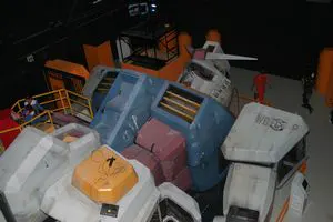 コックピットに乗り込み、ハッチを閉じるとガンダムが起き上がるんだろうか?「こいつ、動くぞ!」なんて言ってたら、ギュオンギュオン音がしてモニターがつき、ザクが襲い掛かってくるところを迎撃したりするに違いない!むっちゃ乗りたい!
