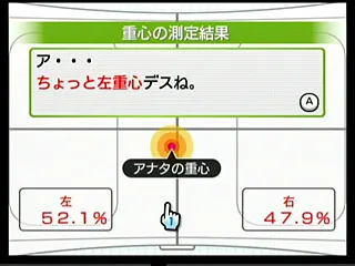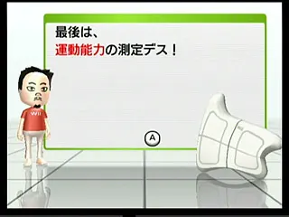 「最後は、運動能力の測定デス!」案内役は、Wiiボードのウィーボくん。ちょっとしたミニゲーム風な測定をこなすと...