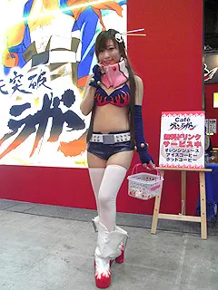 グレンラガンのヨーコに扮したコンパニオンのお姉さん。プリティ~… 「撮っていいですか?」と頑張って声をかけてみました。恥ずかしかった… でも、こうするとポーズをとってくれるので楽しいですね。