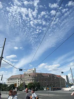 ライプツィヒ中央駅周辺の市街。いいお天気でした。いろんな種類の雲がいっぺんに出ていて絵的におもしろい。ドイツの夏は気持ちいいです。直射日光が当たるとチリチリしますが、日陰になると肌寒いくらい涼しい。湿度が低いというのはここまで快適なのか。