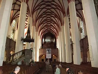 バッハが晩年、オルガン奏者・指揮者として勤めたトーマス教会に行きました。音楽家達が練習を行っていて、パイプオルガンと歌声がとても綺麗に響いていました。構造的に、音がよく響くように設計されているのかもしれません。