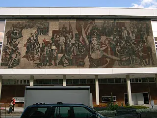 共産主義時代の建物や当時の様子を伝えるものはどんどん取り壊されています。この建物も、近々取り壊され、当時を象徴する壁画の保存は考えられていないそうです。
