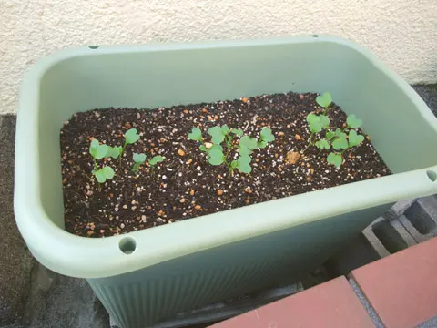 大根植えた 9月の末くらいに大根の種を蒔いたんですよ。 園芸ショップに行ったら、こんな深いプランターがあったもんで衝動買い。根菜も十分の深さ。土入れたら重くて持ち上がんないくらい。 一週間くらいで双葉が出てきた。間引いて食べたらカイワレっぽい味だった。当然か。 今はもうこんなに葉っぱが立派に。そろそろ間引かなきゃ。3株くらいを残して育ててみるつもり。 X Facebook はてブ Pocket LINE コメント(1) « ■前の記事:星のブランコ » ■次の記事:小大根 コメント satsuki 2009年11月16日 16:37 [ 1 ] 自然の恵み!!! 成功するといいですね☆ コメントの投稿 コメントの返信 名前 コメント