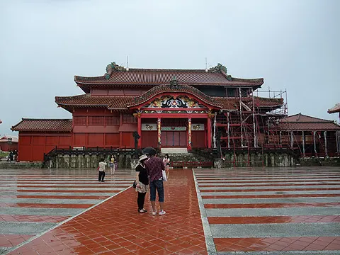 数時間後、再び首里城へ。右半分は修理中でした。雨も途切れ始め、歩くのも楽に。でもまぁ、すでに靴はズグズグで、これ以上濡れようがない状態だったんですけどね。