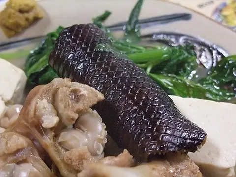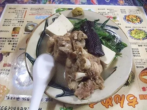 ダシにイラブー(海ヘビ)を使っていて、これがまた、いい香り!濃いカツオダシみたいな感じです。爬虫類なのに魚介系な香りがするなんて不思議。食べてみたけど、小骨だらけで肉は少なく、出がらしで味は無かったです。こりゃ、ダシ用ですね。