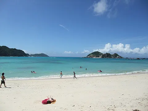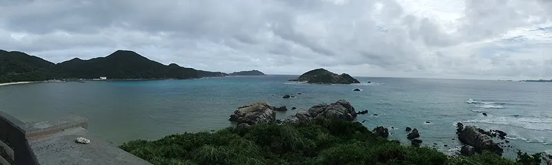 渡嘉敷島の阿波連に到着。天気悪いわ~。でも、こんな天候でも青いところは青い。さすが、南の島の海。