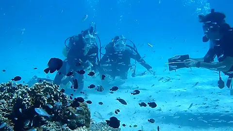 体験ダイビングもしてきました。熱帯魚がうようよ!すごい透明度!世界でも3本の指に入るダイビングスポットだそうです。これでも、台風の影響で少々濁っているんだとか。