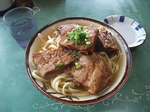 お昼は山原そばへ。ガッツリ系のボリューム満点で有名で、いつも行列ができるお店です。自分たちはタイミングが良かったのか10分ほどで入れましたけど、後からいっぱい人が来て、行列の長さが店の外まで伸びてました。