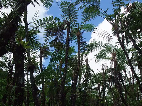 ジャングルやんばる亜熱帯園。熱帯の木々が頭上を覆います。少々ひなびた観光施設の雰囲気がありますが、それはそれで楽しむ。