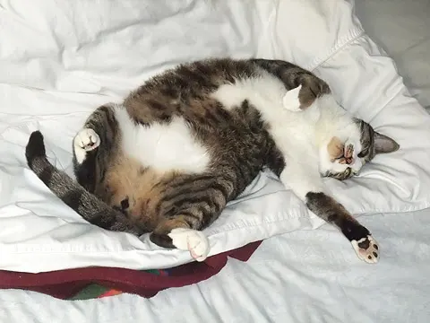もう7才ですよ。フローリングや廊下で伸びてます。