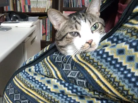 冬恒例 ここんとこの冷え込みは厳しいですね。ルーさんがすぐ膝の上に飛び乗ってきます。 フリースを着て、懐の中に入れてやる。温いか。温いか。 X Facebook はてブ Pocket LINE コメント(4) « ■前の記事:Arrows Zの純正クレードル改造2 » ■次の記事:山の霊園を散歩 コメント さじ 2012年2月 6日 21:11 [ 1 ] そんなことしたら、膝の上に乗ってくれなくなるじゃないか! …まぁ、いつでも毛布に潜れるようにしてあるのに こっちに来るので、半分甘えてるんでしょうけどね。 げんた 2012年2月 8日 10:47 [ 2 ] 可愛いではないです(^o^)今年の花見のとき連れてきて! さじ 2012年2月 8日 19:52 [ 3 ] そんな長時間はムリやなぁ(笑) うちに見に来るしか! げんた 2012年2月 9日 10:20 [ 4 ] では、落ち着いたらナデナデしに行くのでその時は宜しくッス♪ コメントの投稿 コメントの返信 名前 コメント