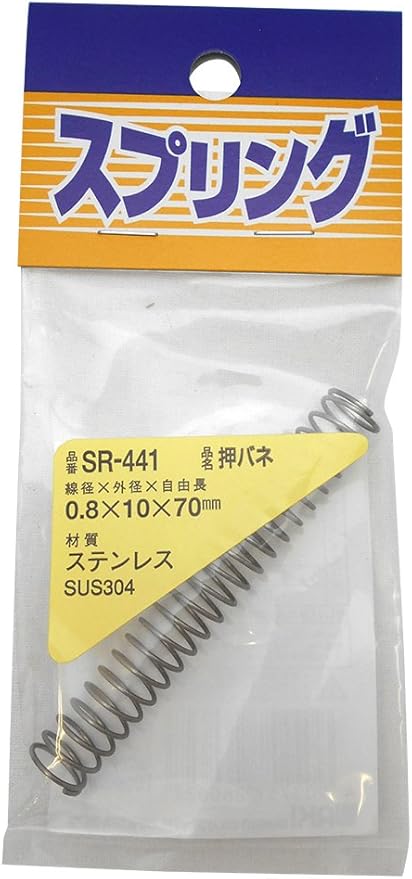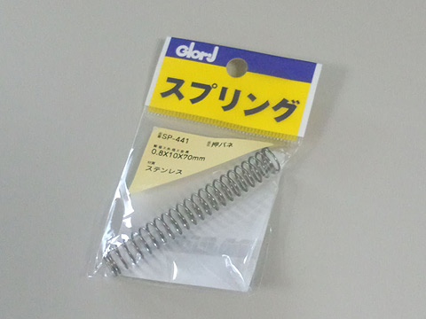 買ってきたのは線径0.8mm、直径10.0mm、長さ70.0mmの押しバネ1本。ホームセンターで128円でした。