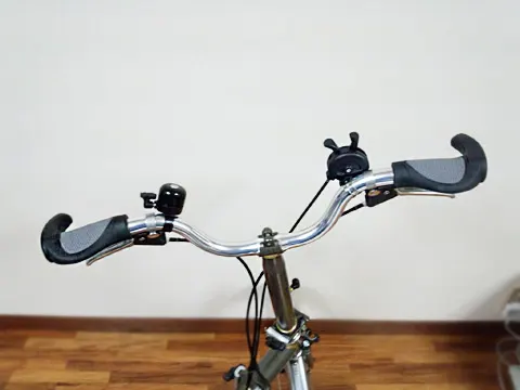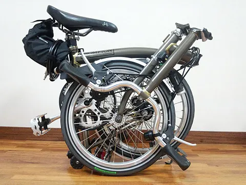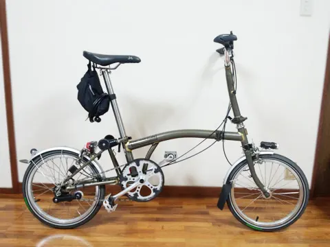 BROMPTONのハンドルを少し低く BROMPTONのハンドルをMタイプ純正の「ひ」の字型から、少し低いものに交換。どうにも純正ではポジションが高すぎてお尻が痛いので、LORO大阪さんでワイヤー調整も含めてやって頂きました。 純正と同じアルミ製ですが、こちらはツヤがあります。個人的にこっちの質感の方が好み… 幅は純正と同じにカットして頂きました。 ポジション的にはこんな感じ。シートより少し高いのが楽です。 折り畳んでもグリップが地面に擦れず、いい感じです! X Facebook はてブ Pocket LINE コメント(0) « ■前の記事:BROMPTONのシートポストをチタン製に交換 » ■次の記事:モフモフすルー コメント コメントの投稿 コメントの返信 名前 コメント