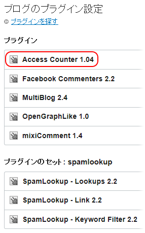 MTの管理画面から、ツール → プラグインへと進み、Access Counter 1.04 を選択する。