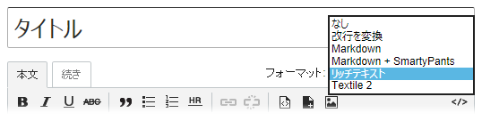 MTの記事の作成エディタは標準でリッチテキストになってる。自分の場合、記事はTEXTエディタ(秀丸)を使いタグを付けて編集してからコピーペーストしているので、よく間違ってリッチテキストに貼り付けてしまい、記事にタグが文字として表示されてる状態で投稿しかける。
