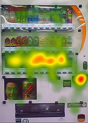 正本: 疑うどころか、何も考えずに信じていました。その証拠に、弊社では主力商品の缶コーヒーはずーっと自販機の「左上」に置いていました。でもアイトラッキングで分析したところ「左下」ということが分かった。