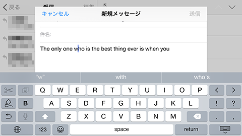 英文字キーパッドも、iPhone 6 Plusではキーの配列に余裕があり過ぎる。もう一段上に足して、1、2、3… の数字キーが欲しい。英文字・数字をいちいち切り替えず、そのまま入力したい。現実のキーボードのデザインに習ってスペースキーが横長なのがAppleらしいところではあるのだけども、ここは限られた空間を有効にするため短くし、「←、→」キーも足してほしい。