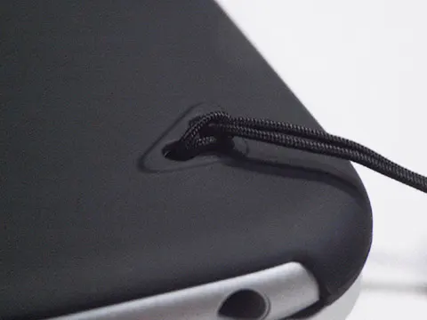 落下防止にと、ストラップが取り付けられるこれを購入したのだけど、背面に結び目ができるため、平らな所に置いて操作するとガタつくのがちょっと残念。ほとんどの場合、手に持って操作するので関係ないけども、できたら側面にストラップホールがあれば…
