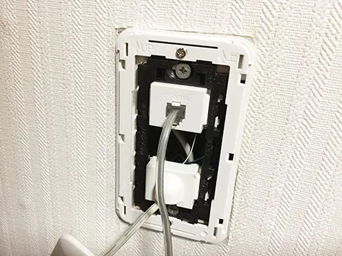 子供が引っ張って壊してしまったので、電話線の差込口一式を新しく交換した。