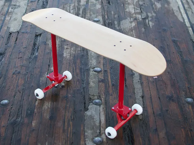 ちょっと、何これ、高下駄スケボー!? …と思ったら、これスケボー型のベンチなんだって。