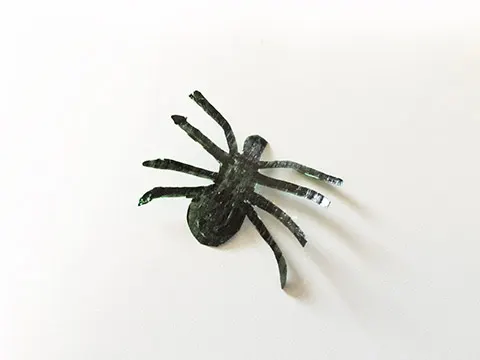 養生テープを切り取ってマジックで黒く塗り、蜘蛛シールを作ってみた。