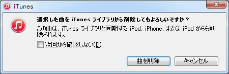 上のようなダイアログが出るが、「曲を削除」を押す。