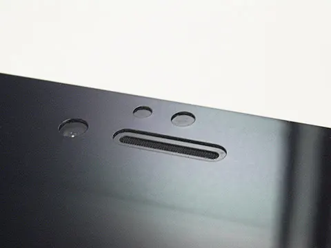 上部スピーカー付近。カメラレンズやセンサー部分も切り抜かれています。