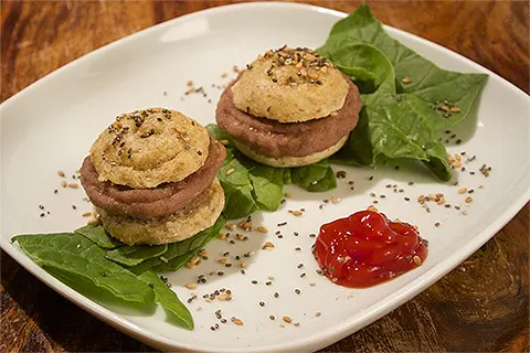 3Dフードプリンタで作られたミニハンバーガー