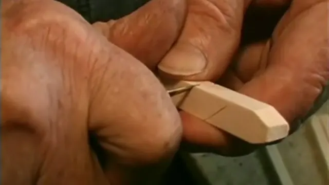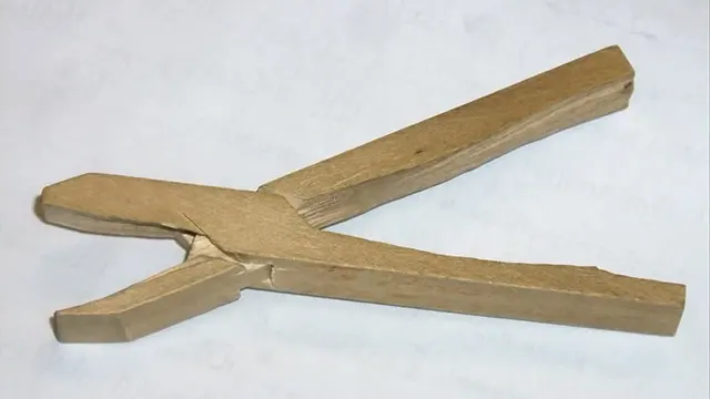一本の木材にナイフで切れ目を入れるだけでペンチになっちゃう。あれ?なんでそれで蝶番状に動くの?加工が素早くて、どういう構造なのか分かんないぞ。