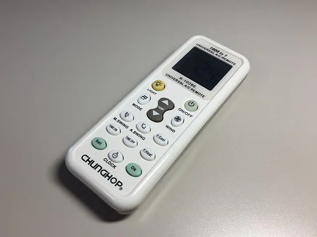 エアコンのリモコンが壊れたので、汎用のエアコンリモコンを購入。各社共通1000種に対応という ユニバーサルマルチリモコン を選んでみました。