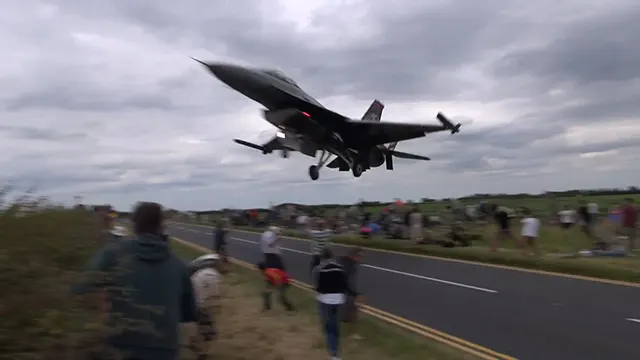 【これはヤバい】戦闘機F-16の超低空飛行がスレスレ過ぎて頭をかすりそう (FUNDO)