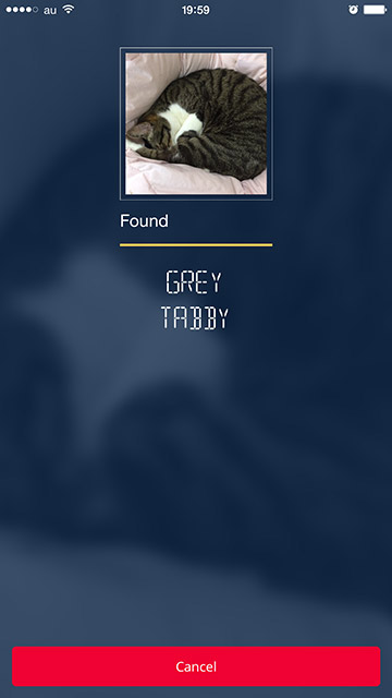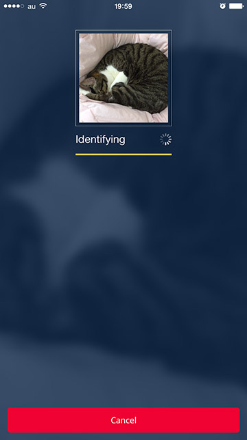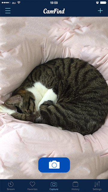 写した画像を解析して調べてくれるアプリ、CamFindを試してみました。うちの猫、ルーさんが丸まって寝ているところをパチリ。