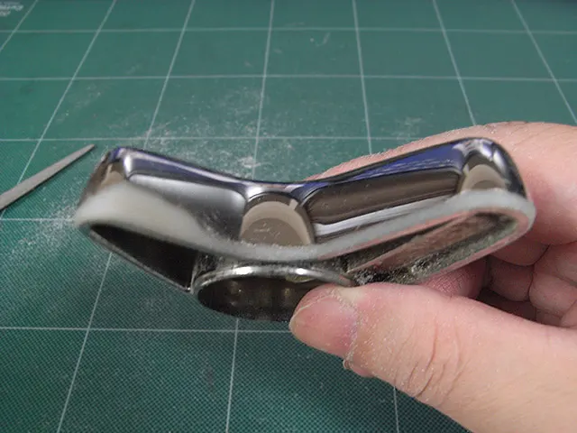 トイレタンクのレバーの加工 我が家のトイレタンクのレバー。こいつで、嫁さんがしょっちゅう指を切ってしまうのだとか。たしかに、↑の画像で下になっている面の角が尖っている。形成時のバリごとメッキされていて、鋭くなっているみたい。 ということで、削ってしまおう。ガリガリガリ。 ぐるりと一周、角を丸めてみた。 装着して嫁さんに確認してもらう。うん、大丈夫そうだって。良かった。これで、トイレをリフォームまでしなくて、よくなくない?よくなくない? X Facebook はてブ Pocket LINE コメント(0) « ■前の記事:サーフィンをしていたら… » ■次の記事:バイクのエンジン型パソコン Proud of Blood コメント コメントの投稿 コメントの返信 名前 コメント