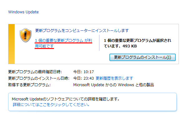 更新プログラムが候補に挙がる。~個の重要な更新プログラムが利用可能です をクリックする。