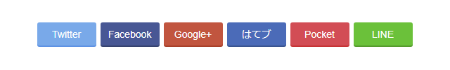 これで各記事にSNSボタンを設置できました。しかしすごいなぁ、CSSで ul li にこんな横並びのボタン風の体裁にできるとは。