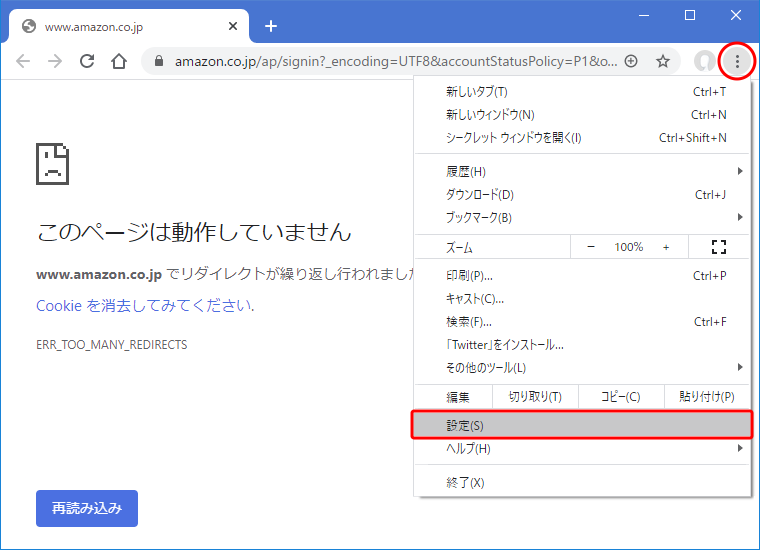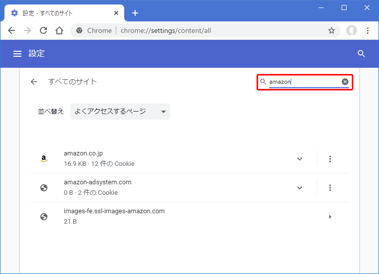 以上で、AmazonのサイトのCookieが削除される。ログイン情報も削除されるので、新たにログインし直す。