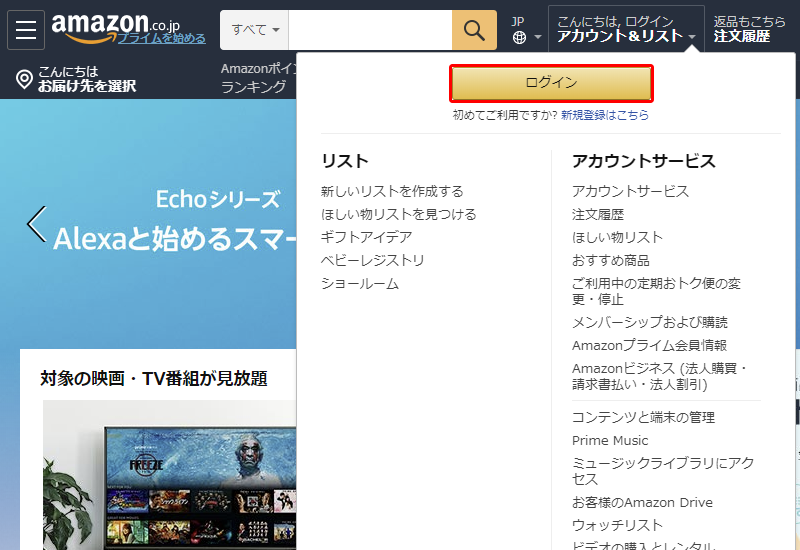 右上の [検索] に amazon と入力する。